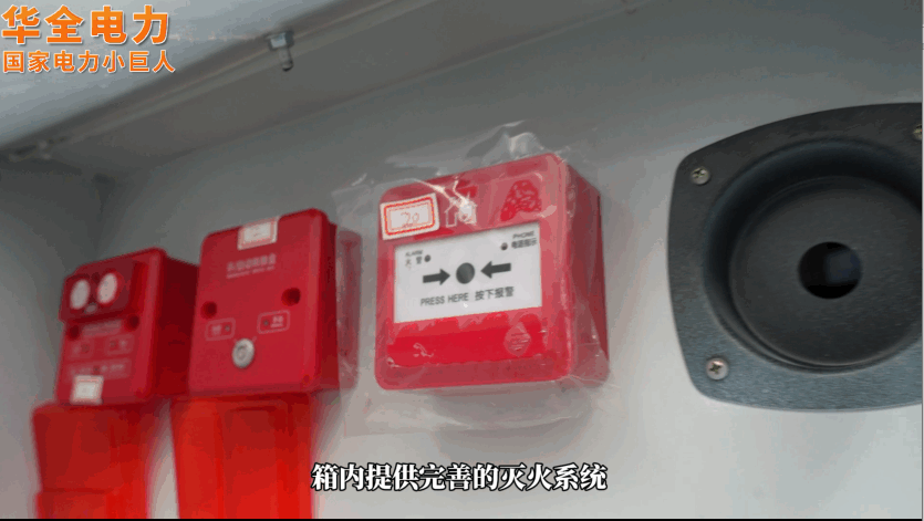 箱內還安裝有完善的全套滅火體系,有安保消防警告系統,也有滅火裝置,一旦出現事故,警告系統在發出警報的同時,箱內的熱氣溶膠滅火裝置也會自動采取滅火措施,將險情消弭于無形。